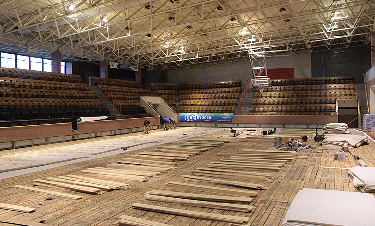 W hali kończy się układanie nowego parkietu. Po zalaniu parkietu w połowie października obiekt został zamknięty. Podłogę zalała firma sprzątająca. Konieczne było przeniesienie niektórych spotkań do innych miast. Kluby, które na co dzień trenują w hali SDS-u, musiały też odwołać część treningów. Koszykarki, koszykarze i siatkarze musieli swoje ligowe mecze rozgrywają m.in. w Stargardzie Szczecińskim i Przecławiu.
