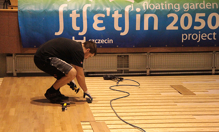 - Dobiega końca montaż wielowarstwowej drewnianej podłogi. To bardzo dobry parkiet. Drewno dębowe jest na wierzchu - mówi zastępca dyrektora SDS-u Ireneusz Nowak.