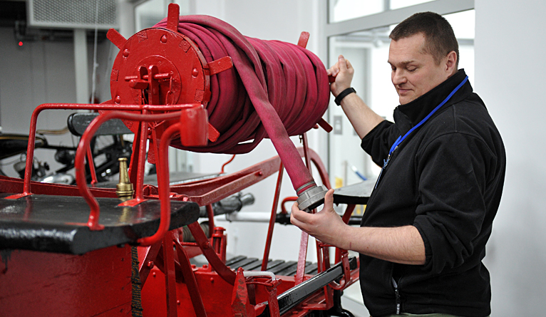 - To potocznie zwana "sikawka". Tak nazywano pompy tłokowe - opowiada Jacek Kosiński, asystent konserwatora. - Wozem mogło jechać nawet dziewięć osób. Pojazd jest wyposażony w dzwon, który pełnił funkcję dzisiejszej syreny strażackiej.