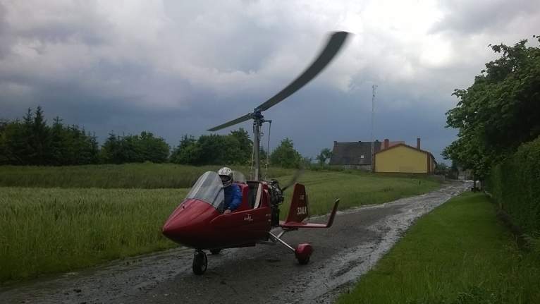 Przypominający niewielki helikopter wiatrakowiec, który wystartował z lotniska w Krępie, musiał lądować awaryjnie.