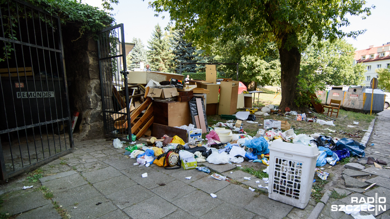 Stare meble, sprzęt AGD i porozbijane słoiki. To nie krajobraz wysypiska śmieci, a jednego z podwórek w centrum Szczecina.
