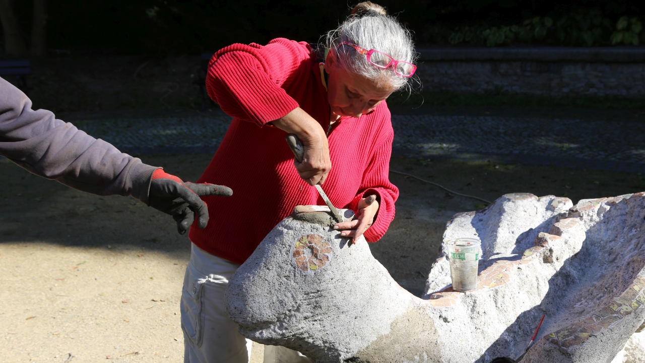 Rzeźbę odnowi też jej autorka, szczecinianka Leonia Chmielnik. Telesfor ma odzyskać dawny blask - i to dosłownie. Jak nowa będzie mozaika na głowie, grzbiecie i skrzydłach smoka.