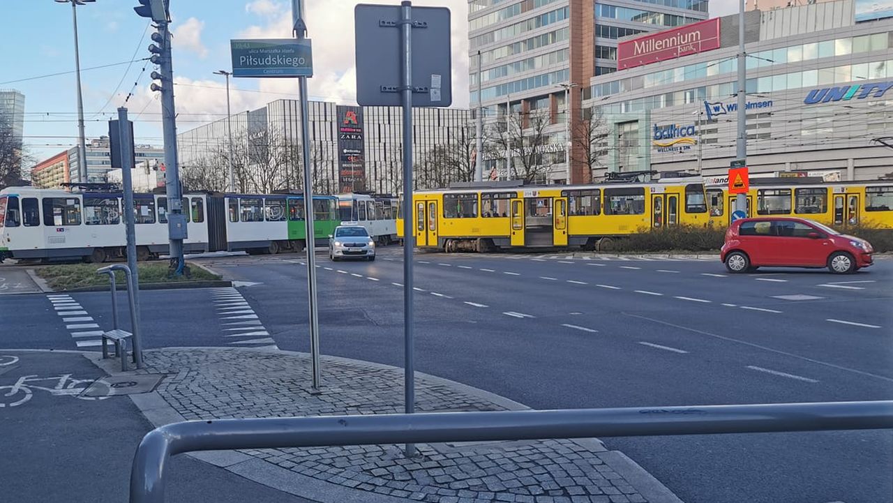 Wykolejenie tramwaju linii numer 5 na placu Rodła. W centrum Szczecina powstają przez to pierwsze korki. Nawet kilkunastominutowe opóźnienia mają przez to linie tramwajowe nr 5, 11 i 12.