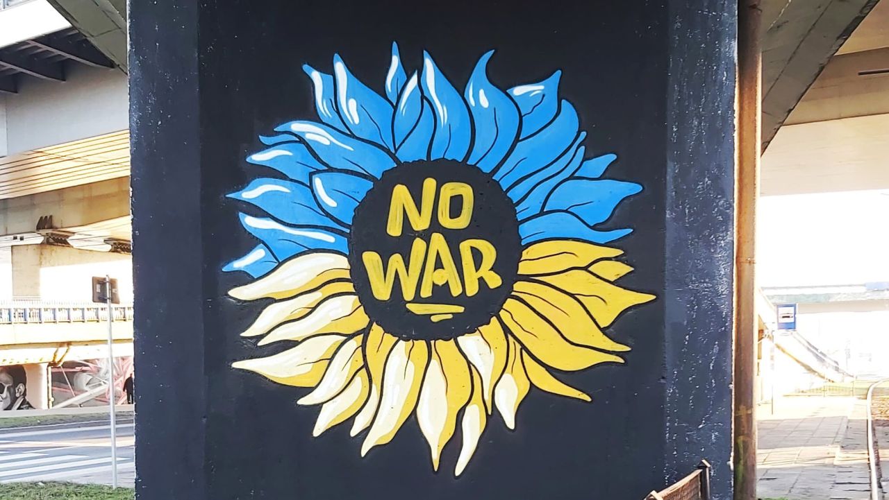 - Mój nowy mural jest poświęcony wojnie na Ukrainie. Namalowałem symbol, jakim jest słonecznik w barwach narodowych Ukrainy. Chodzi o to, żeby zaprzestać wszelkich działań wojennych nie tylko na Ukrainie, ale też na całym świecie. Chodzi o to, żeby powstrzymać wojnę, bo przemoc nigdy nie jest, nie była i nie będzie rozwiązaniem konfliktów - mówi Maciej "Kreda" Jurkiewicz.