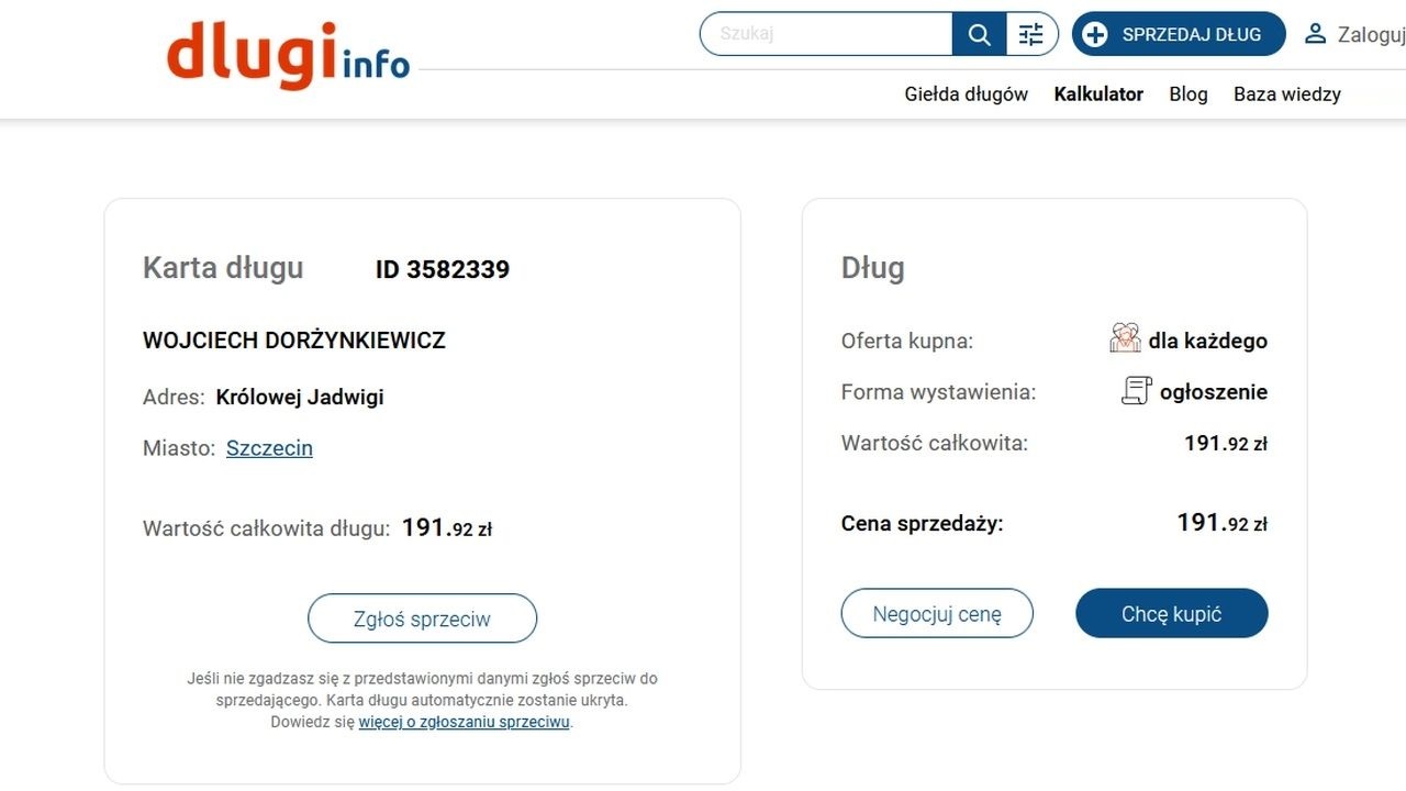 Dziś długi radnego Dorżynkiewicza można kupić na stronie długi.info. Wystawiła je na sprzedaż warszawska firma windykacyjna ESO Poland. W opisie czytamy, że dług radnego PO wynosi aktualnie 191 zł, a oferta kupna jest dostępna dla każdego.