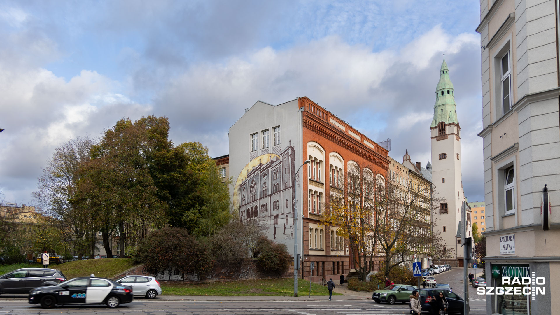 Mural namalowano na budynku Książnicy Pomorskiej - dzisiaj odsłonięto malowidło od ulicy Dworcowej; tam, gdzie do 1938 roku, do tak zwanej Nocy Kryształowej stała bożnica.