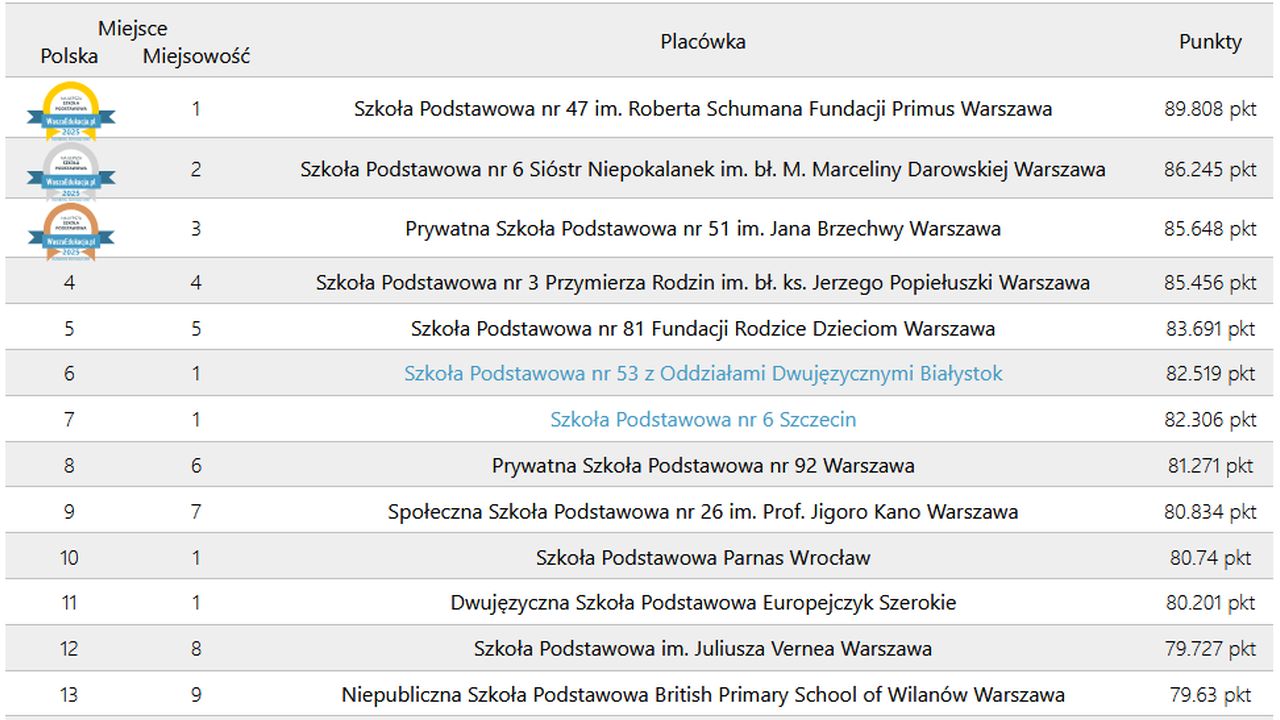 W ogólnopolskim rankingu uwzględniono prawie 8 tysięcy placówek. Wśród nich - na siódmym miejscu - uplasowała się Szkoła Podstawowa nr 6 w Szczecinie.