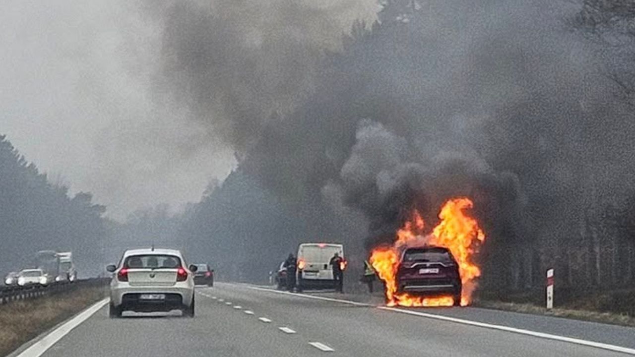 Przed wjazdem do Szczecina spłonął samochód - droga jest zablokowana.