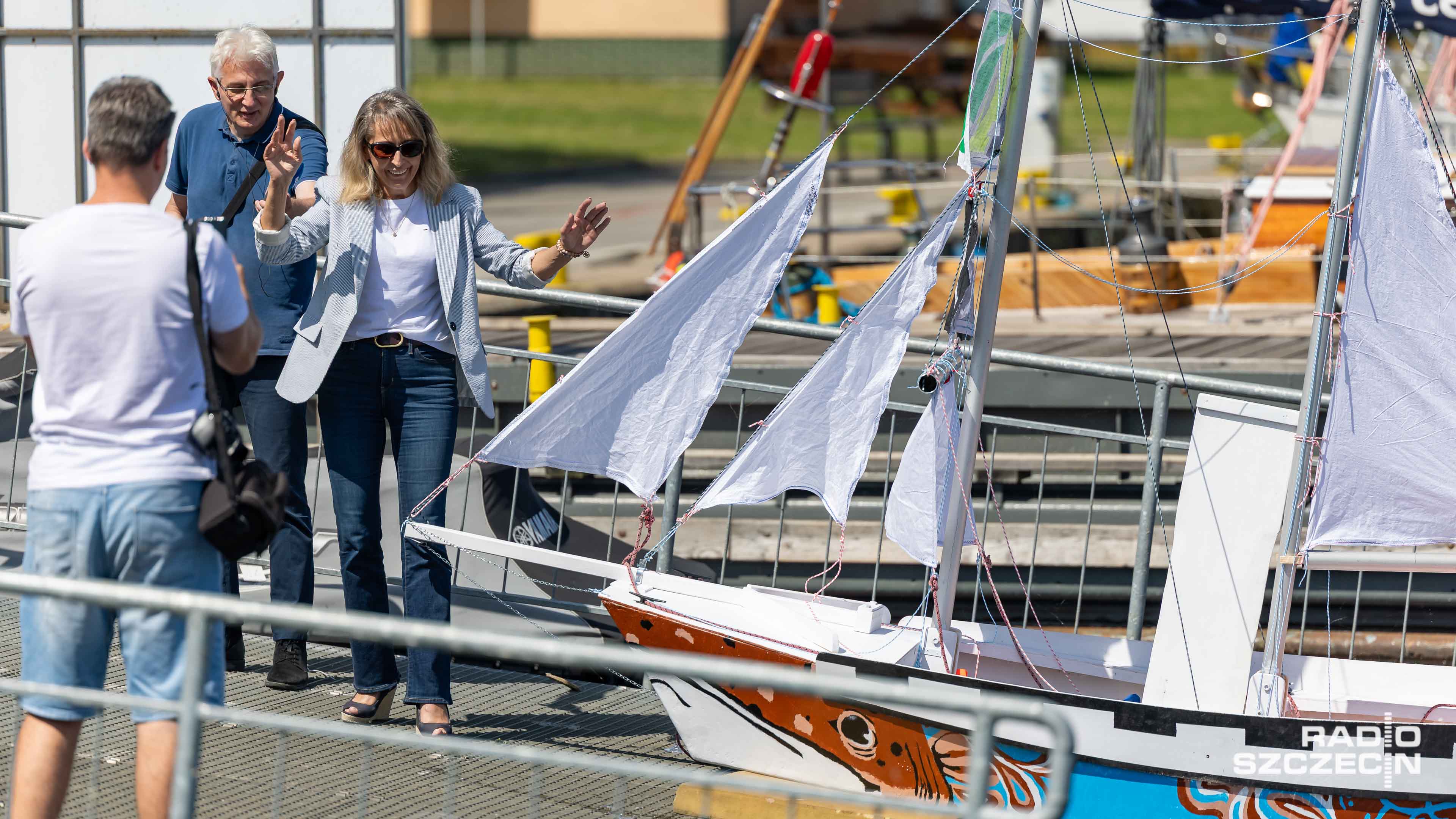 - Mam nadzieję, że ten oto cudny nasz obiekt w okazałym stylu dopłynie do drugiego brzegu - mówiła matka chrzestna łódki.