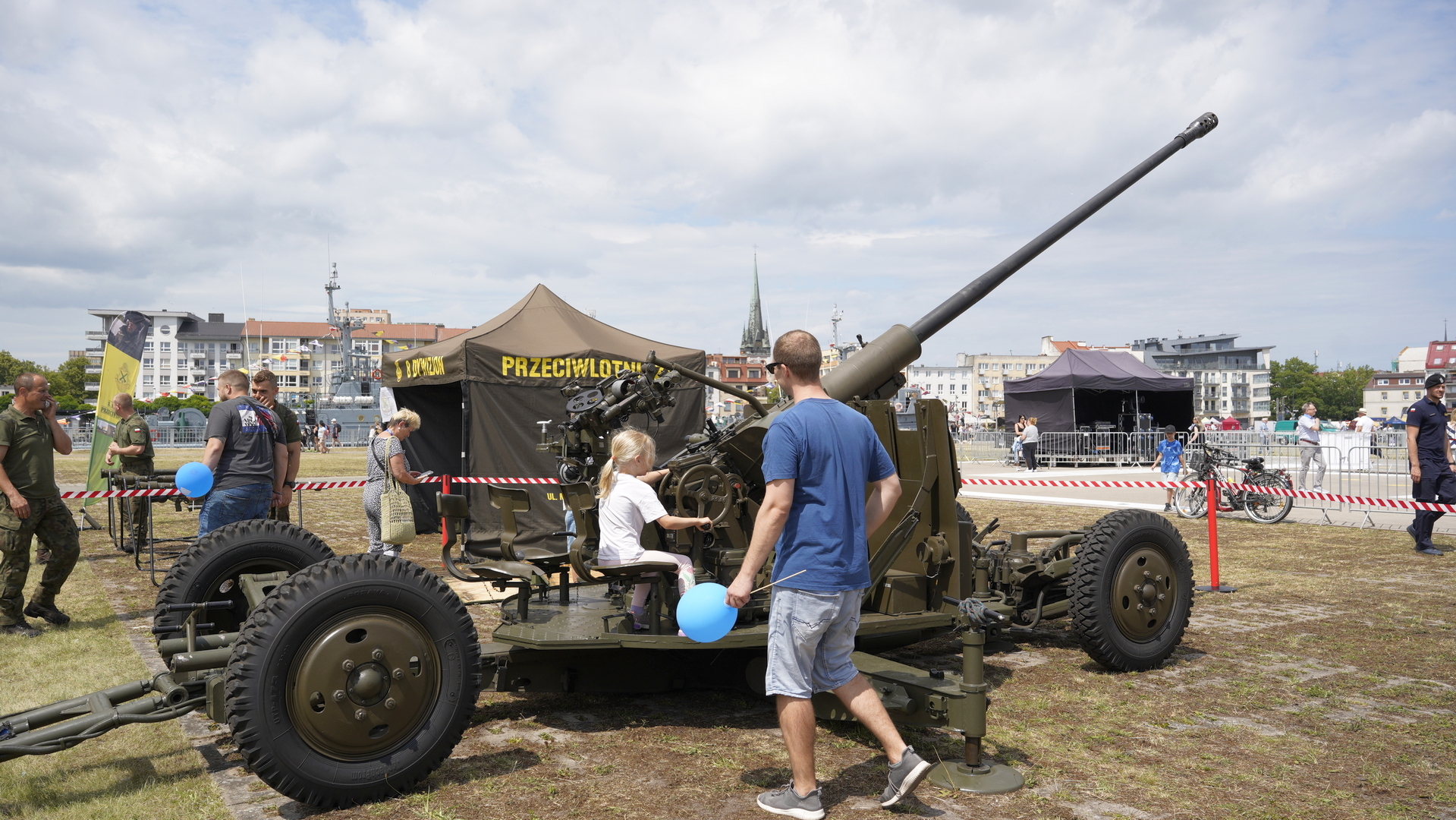 - Nogi mi troszeczkę wystają... A obsługa to trzy osoby... Ale jest bardzo fajne - dodał kolejny cywil przymierzający się do obsługi wojskowego sprzętu.