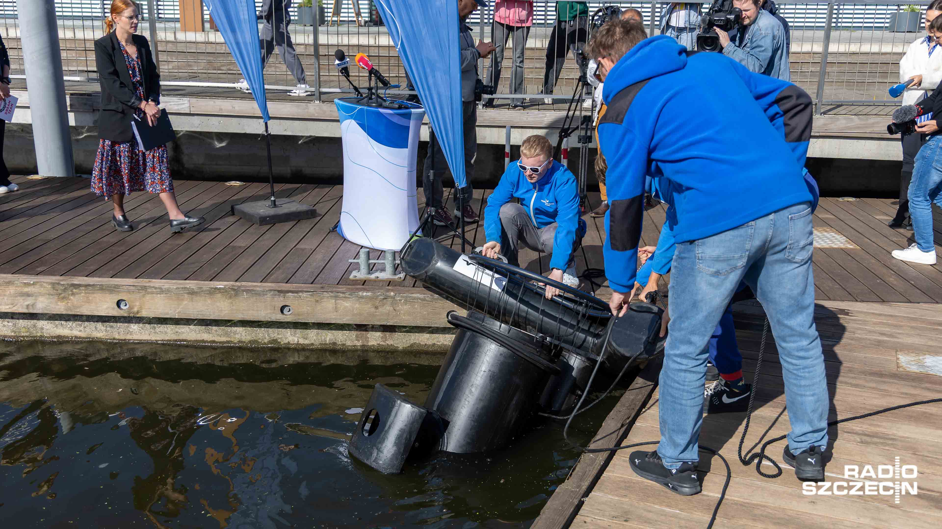 - On ma taką turbinę, wprawia w ruch wodę i dzięki temu zasysa i zaciąga pływające po powierzchni śmieci, które niestety spotykamy w wodzie. Zasysa je, filtruje i zbiera ich około 1,5-2 kg dziennie - mówi Olszanowicz.