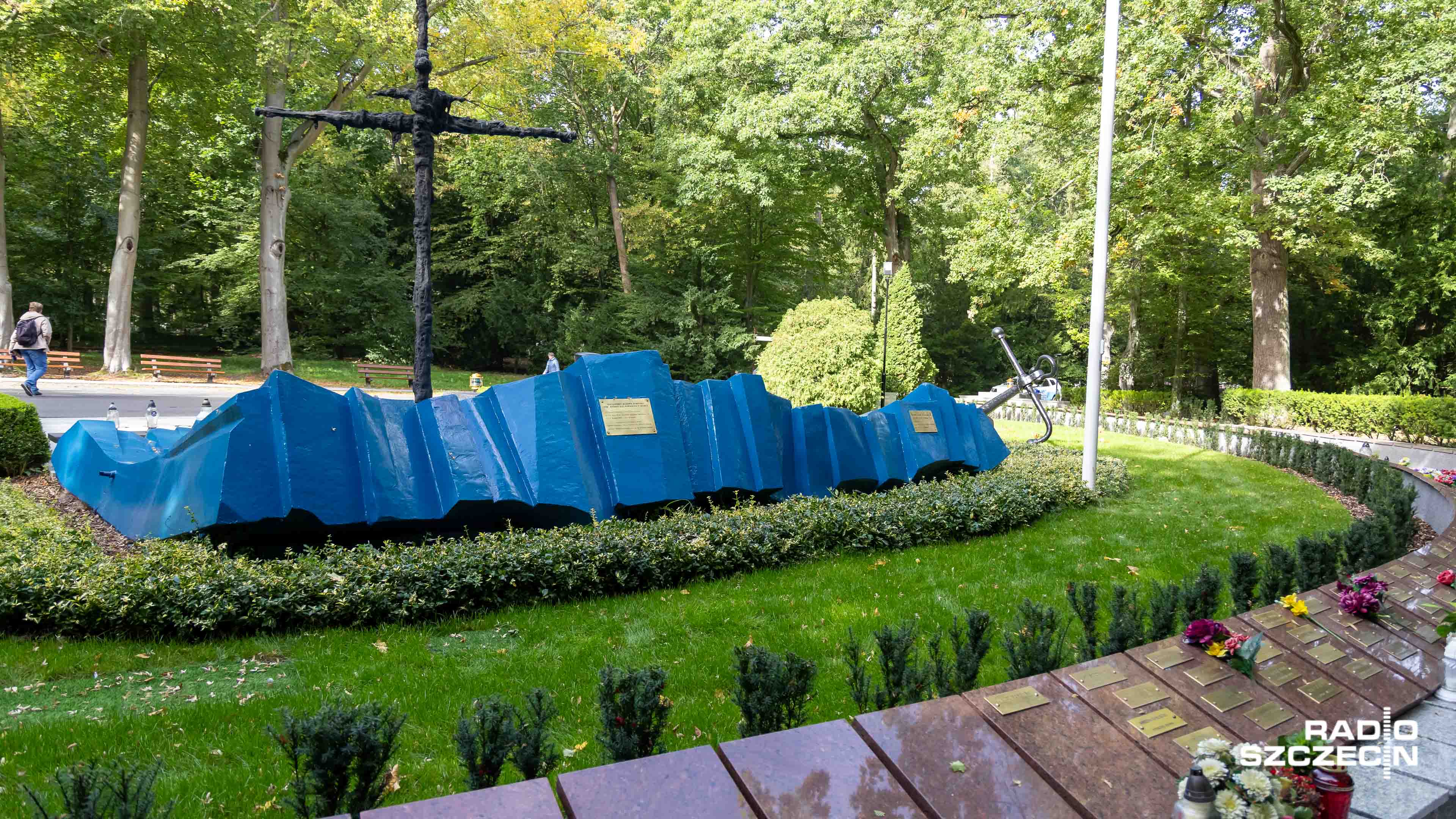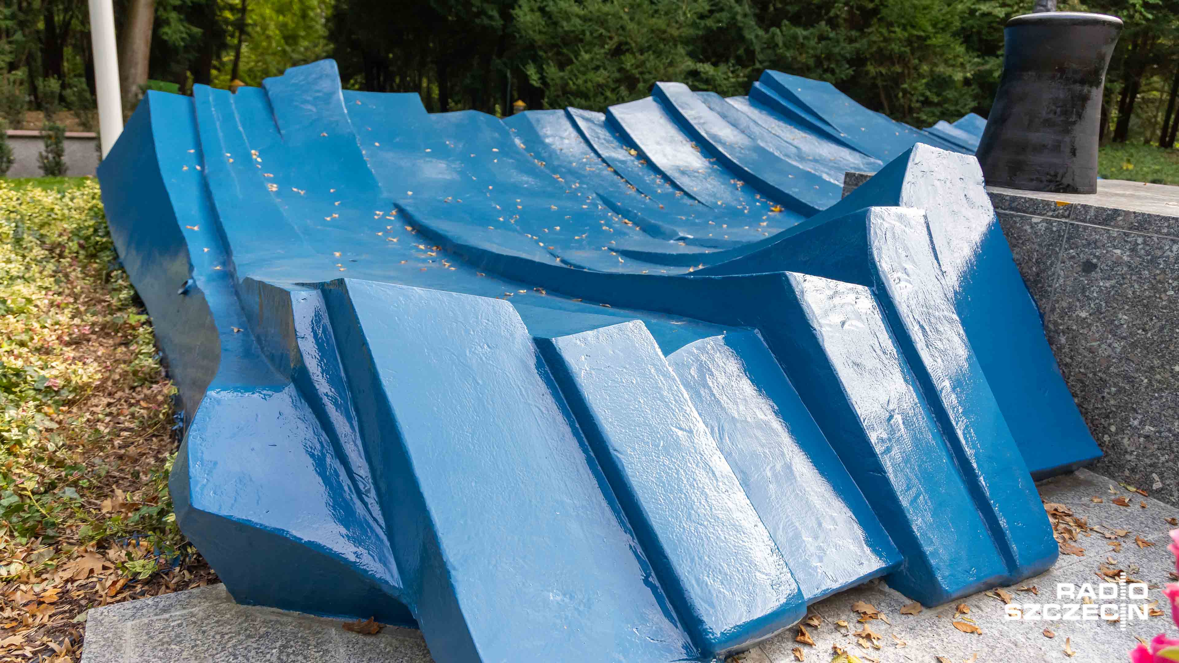 Szczecinianie są podzieleni w sprawie pomalowania na niebiesko fal na pomniku "Tym, którzy nie powrócili z morza", który stoi na Cmentarzu Centralnym.
