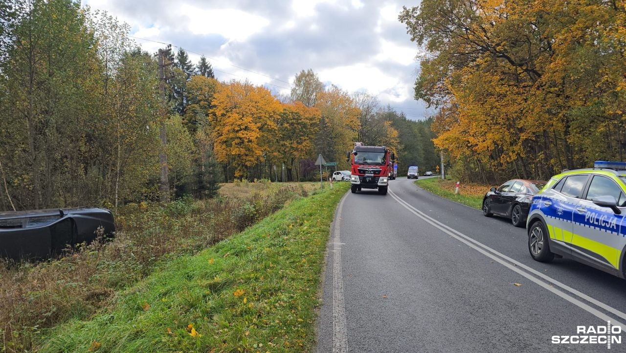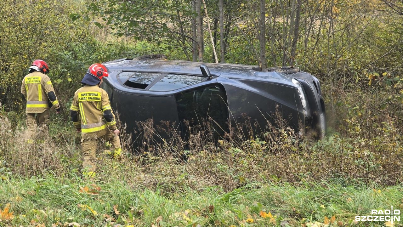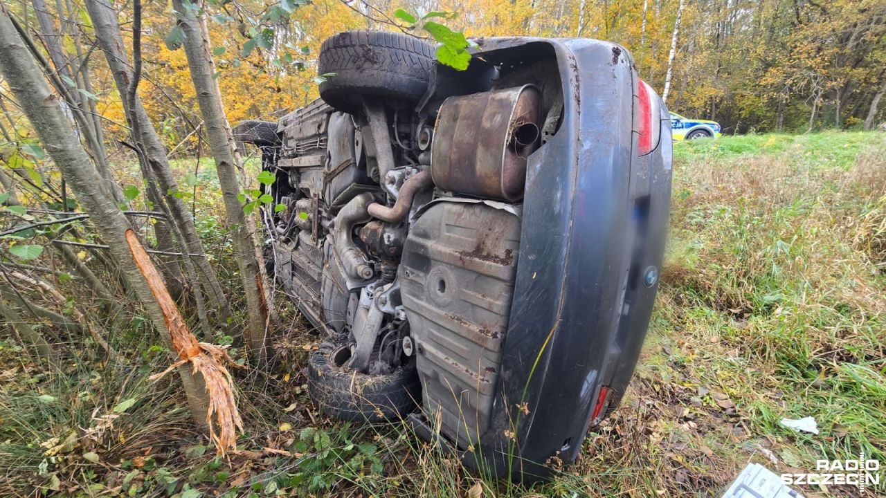 Dachowanie BMW na drodze wojewódzkiej nr 166.