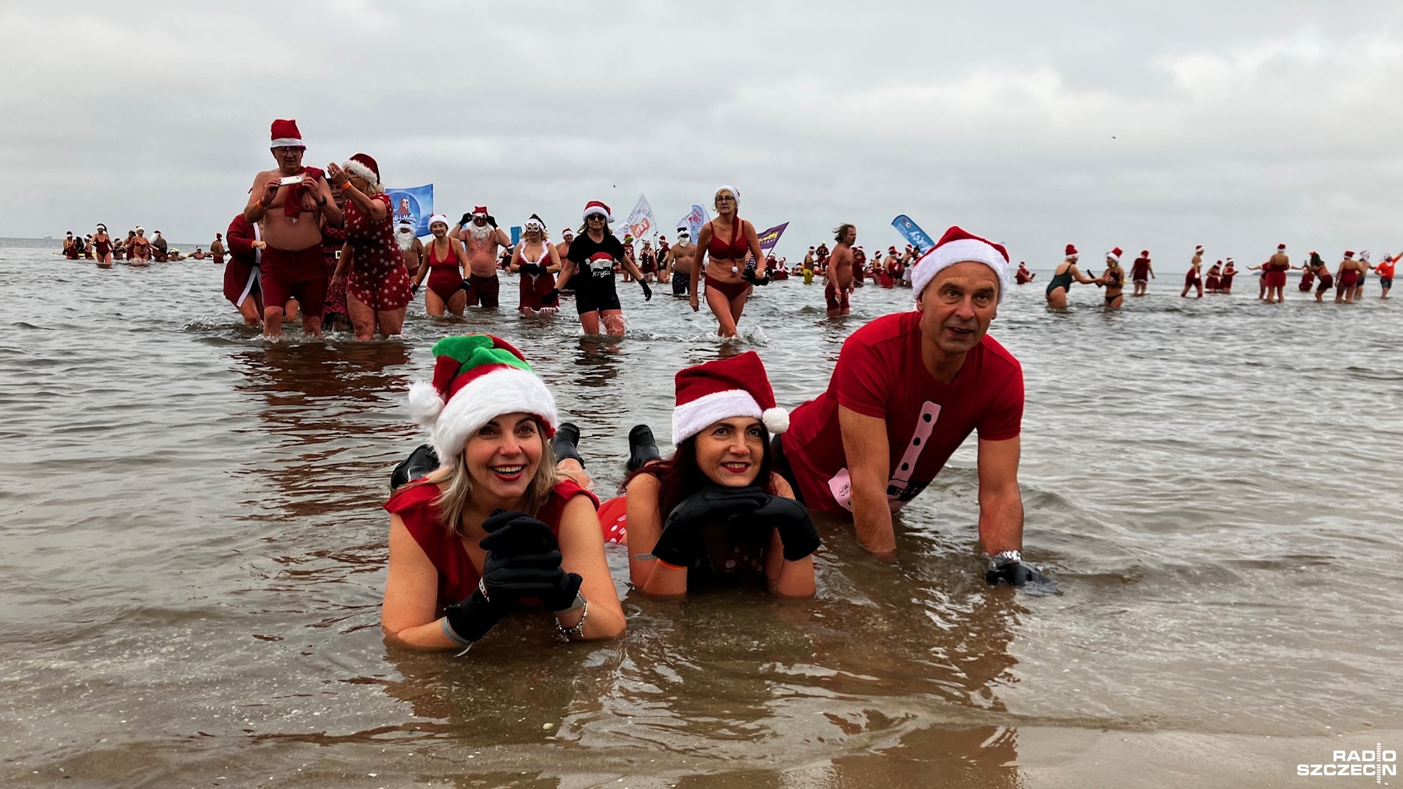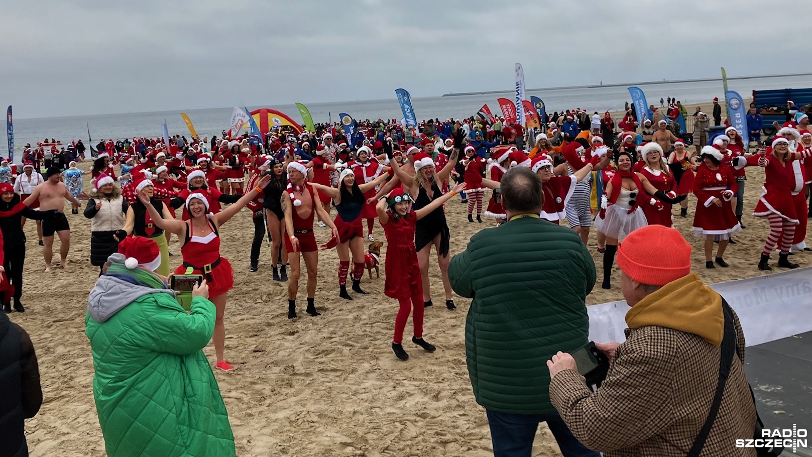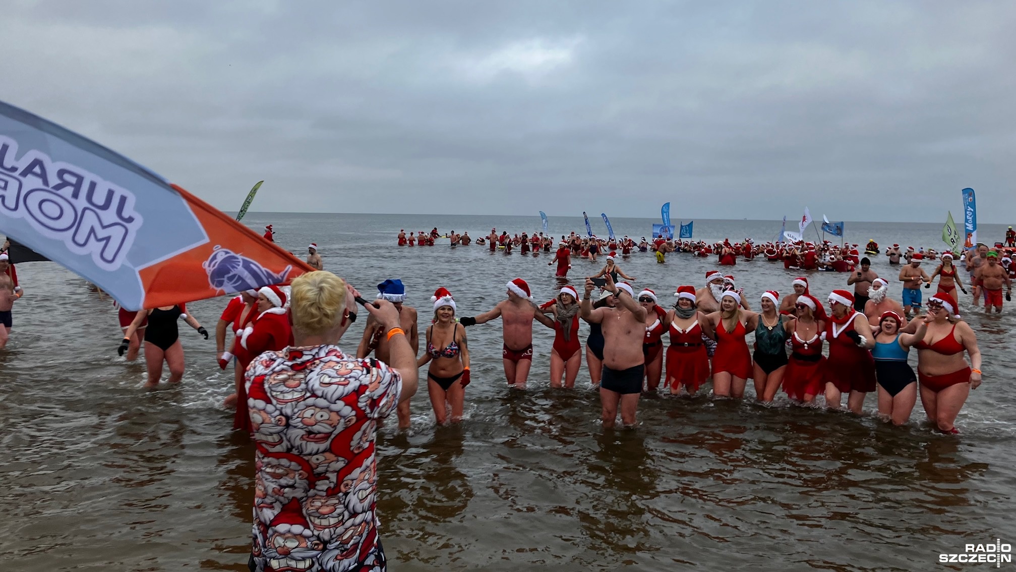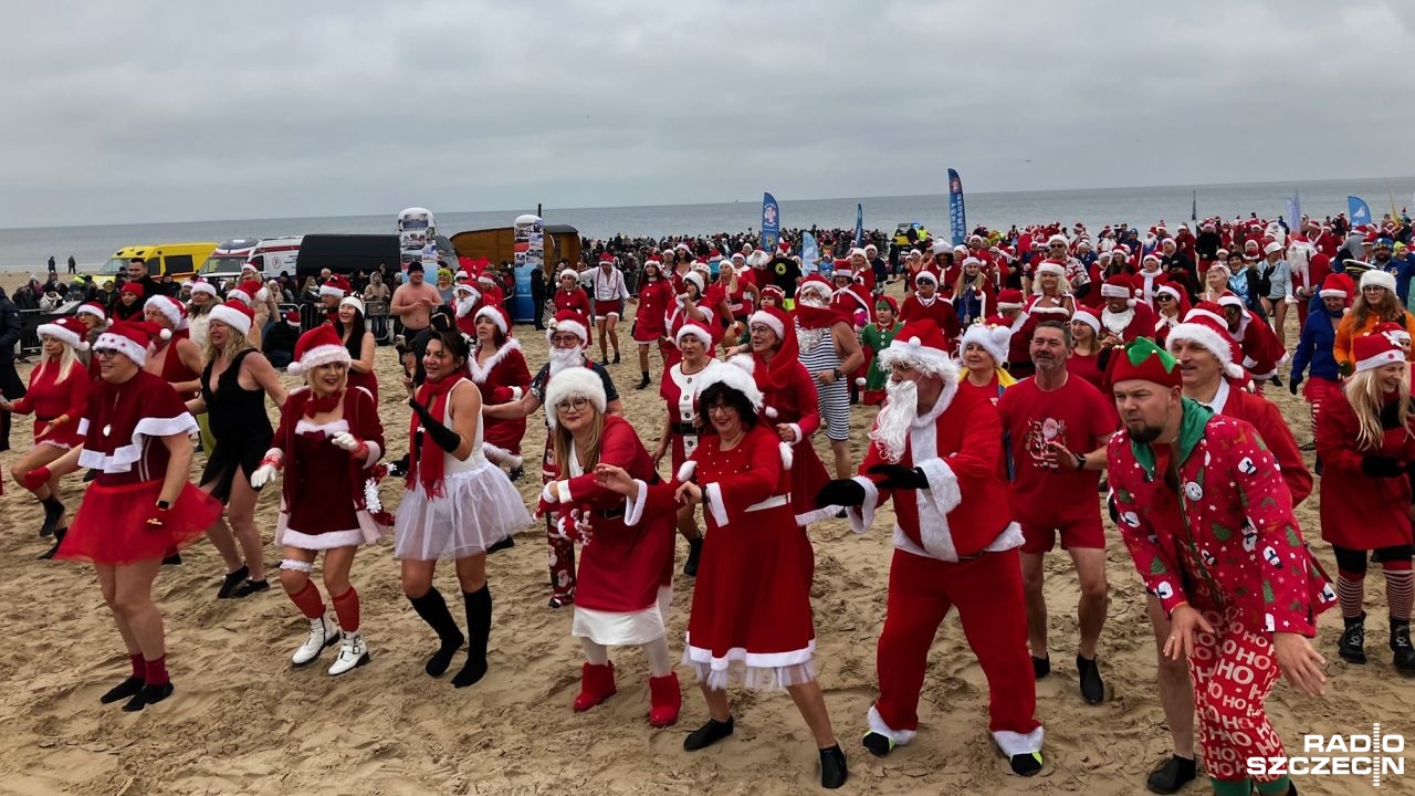 Prawie 500 osób z całej Polski zjechało, by wziąć udział w Inwazji Morsujących Mikołajów w Świnoujściu. Była rozgrzewka i tańce, aż przyszedł czas na wejście do wody.