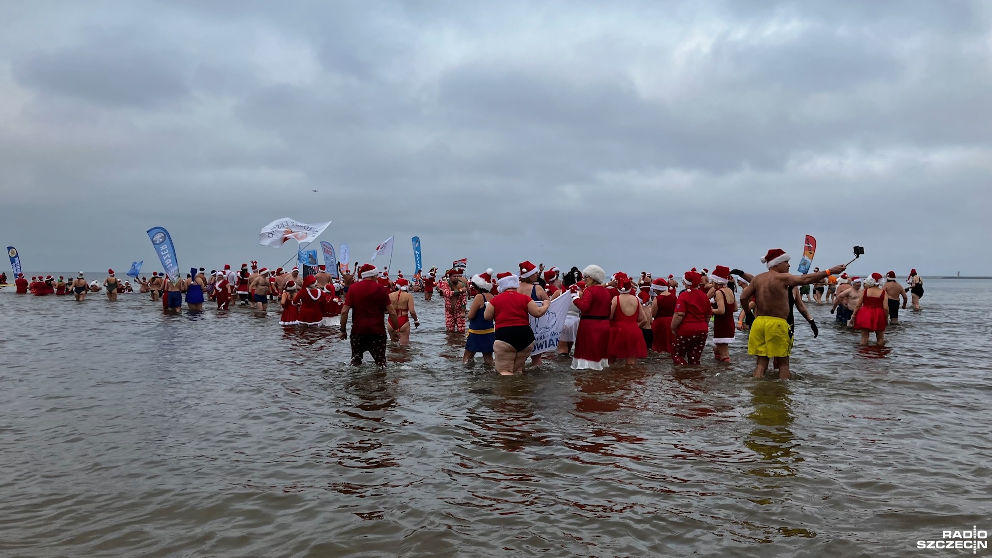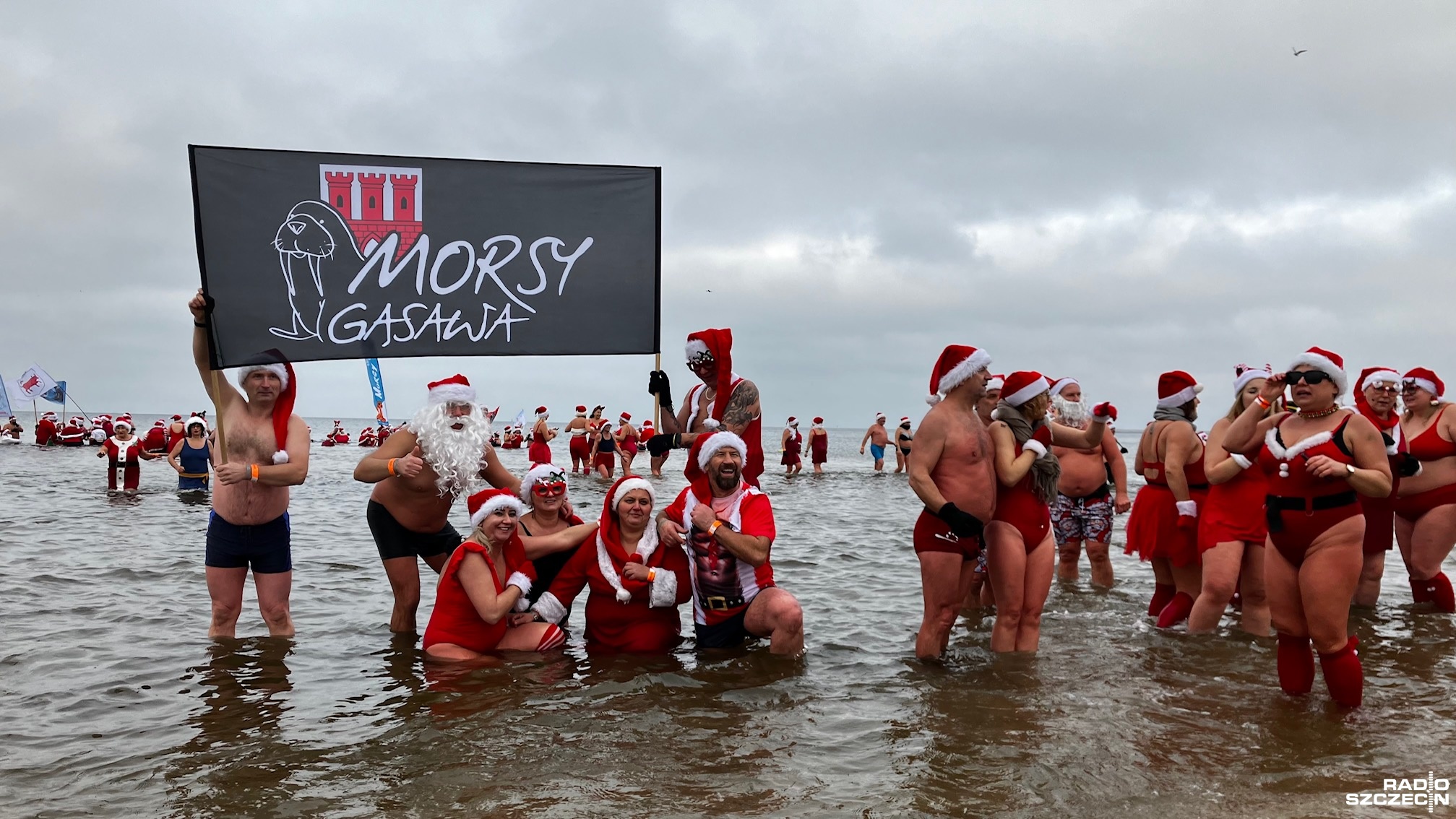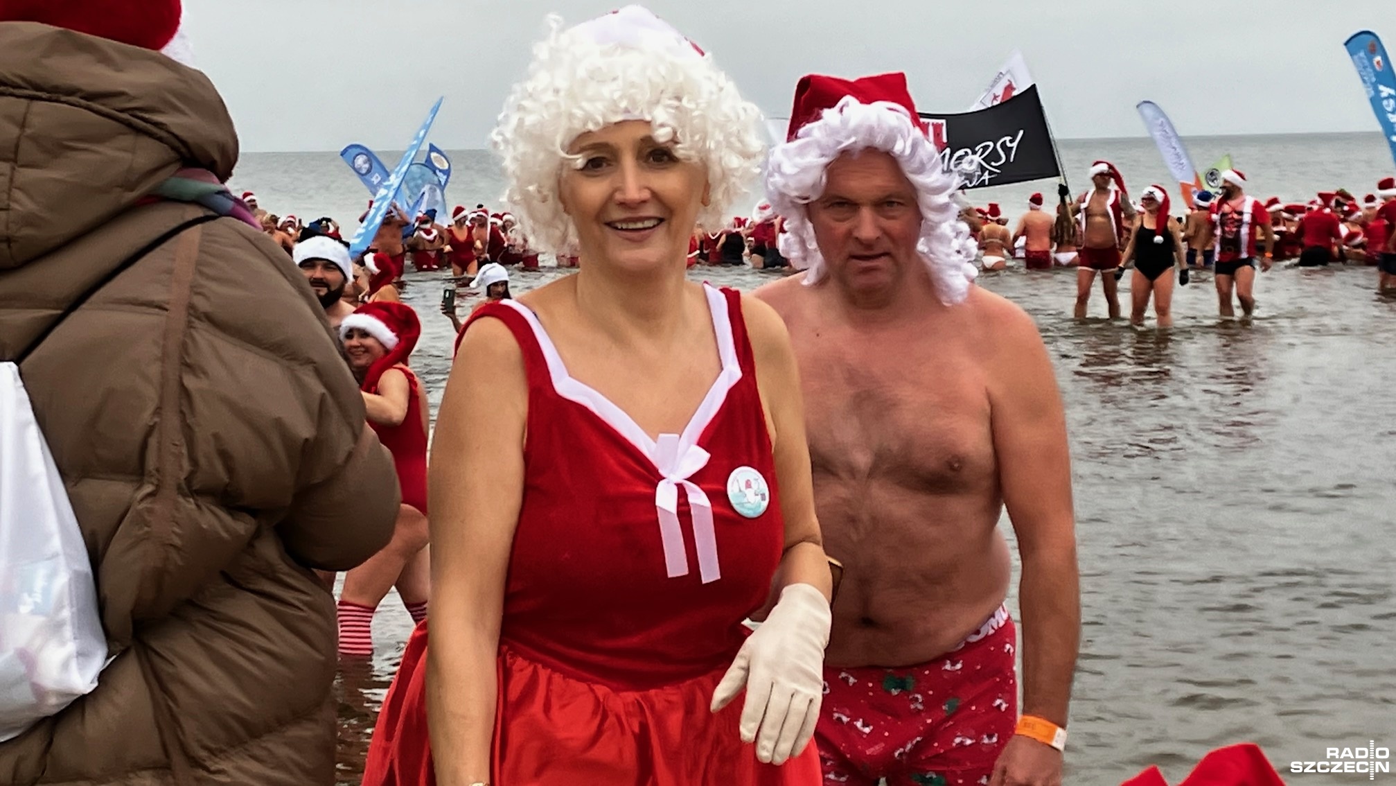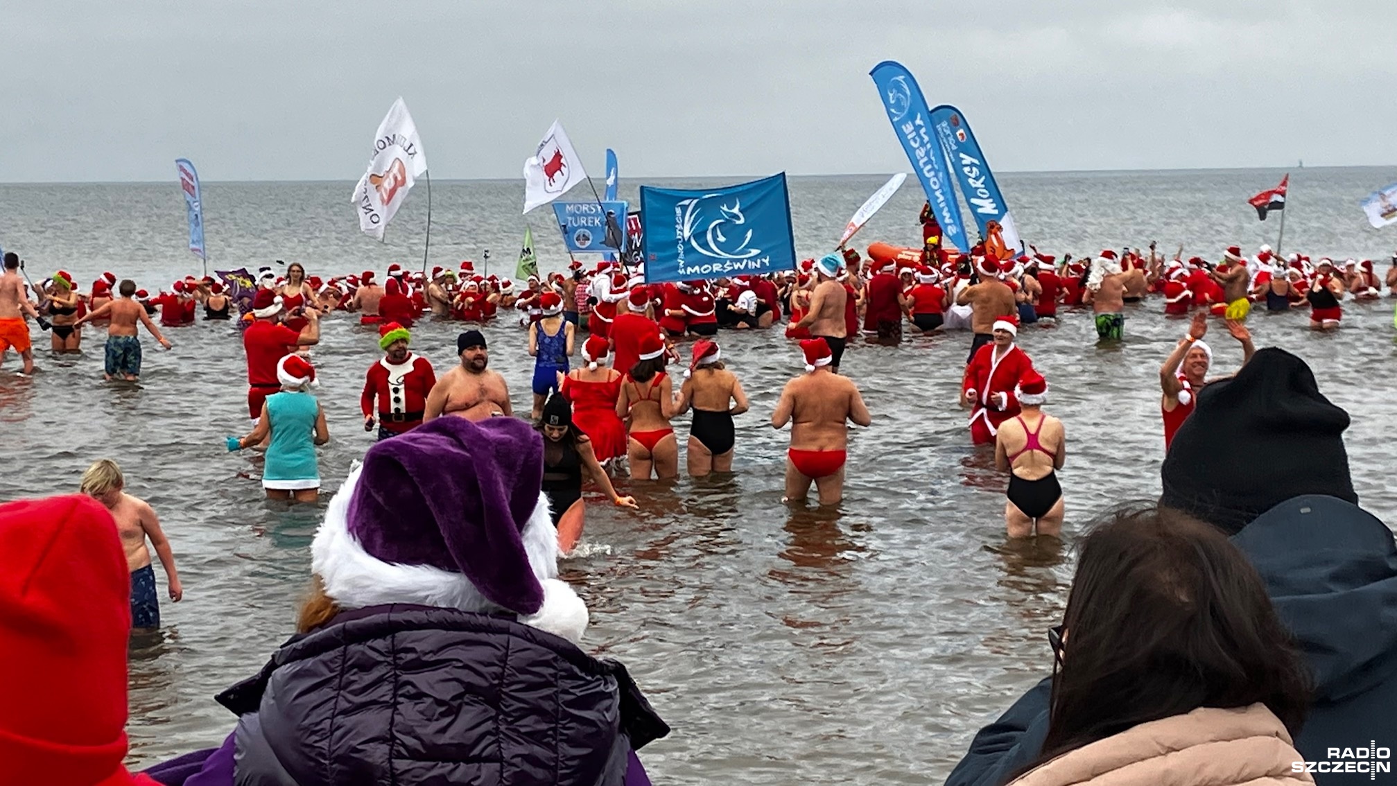 Prawie 500 osób z całej Polski zjechało, by wziąć udział w Inwazji Morsujących Mikołajów w Świnoujściu. Była rozgrzewka i tańce, aż przyszedł czas na wejście do wody.