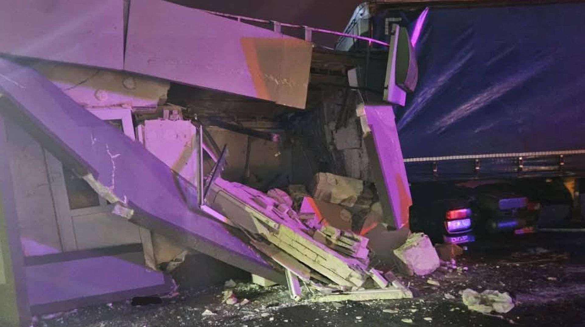 Kierowca ciężarówki wjechał w stację paliw. Do zdarzenia doszło w nocy w Kołbaskowie.