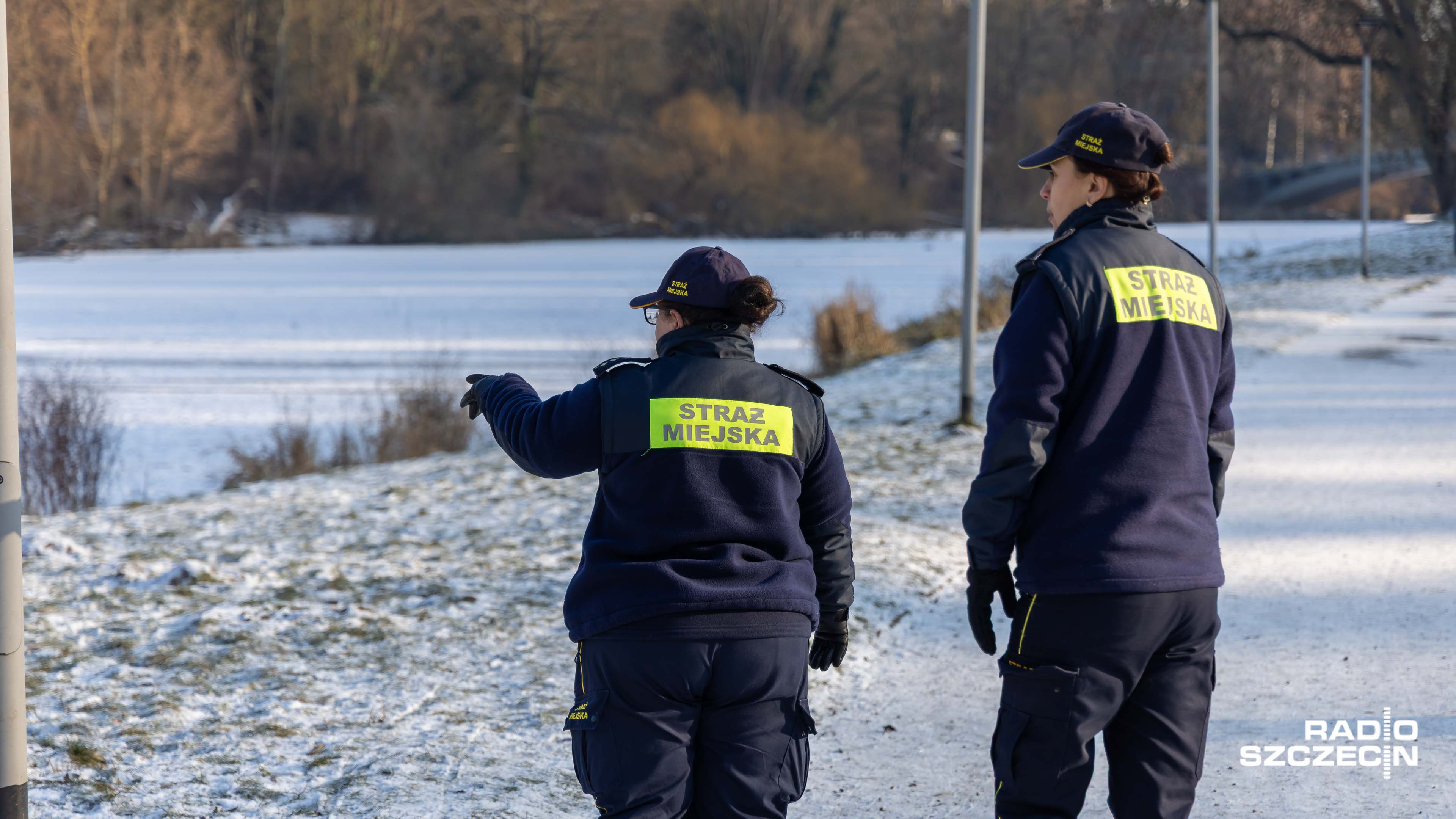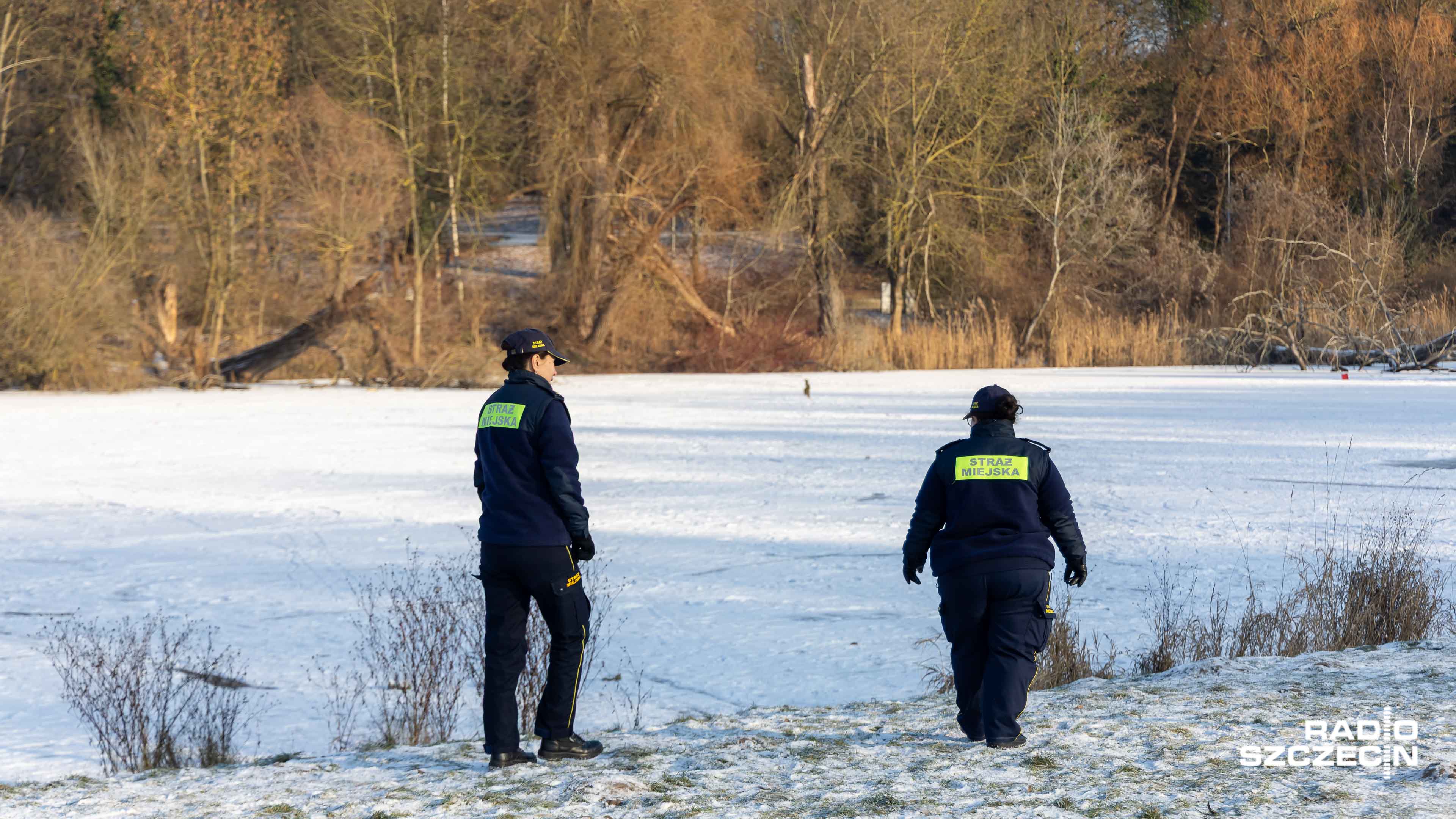Szczecińska Straż Miejska patroluje zamarznięte stawy, jeziora i rzeki. Funkcjonariusze apelują, by rozsądnie korzystać z uroków mroźnej zimy.