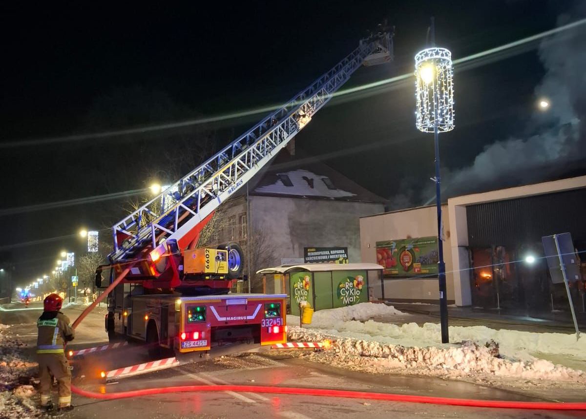 - Ogień pojawił się po 22 i objął dach budynku - mówi asp. Dariusz Schacht, rzecznik prasowy Zachodniopomorskiego Komendanta Wojewódzkiego Państwowej Straży Pożarnej. - Z obiektu samodzielnie ewakuowało się pięciu pracowników sklepu. Ze względów bezpieczeństwa strażacy z pobliskich budynków ewakuowali łącznie 20 osób. Na miejsce zdarzenia początkowo zadysponowano dziewięć zastępów straży pożarnej. W związku z rozwojem sytuacji oraz skalą pożaru, siły i środki zostały zwiększone. Aktualnie na miejscu jest 29 pojazdów i ponad 100 strażaków.