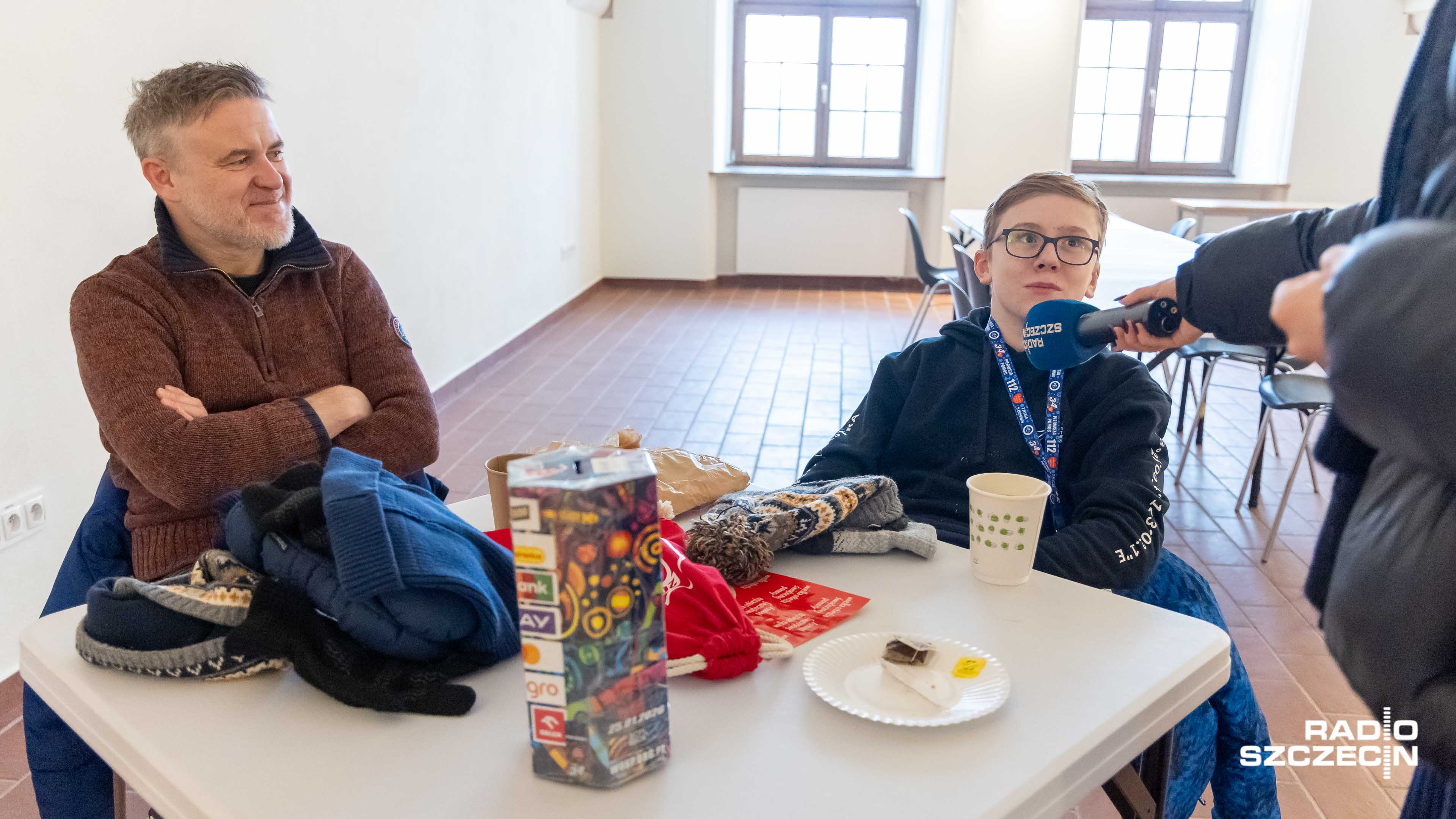 - Nawet jest coś do zjedzenia, jest taka ciepła strefa. Na razie właśnie korzystam z tego, że mogę usiąść, zjeść i odpocząć, bo bardzo zimno jest na dworze. - Zbieramy od godziny ósmej i przyszliśmy tutaj na krótką przerwę, żeby się zagrzać na chwilę. Na pewno też zamierzamy zwiedzać, bo chcemy wesprzeć tę akcję - mówią jej uczestnicy.