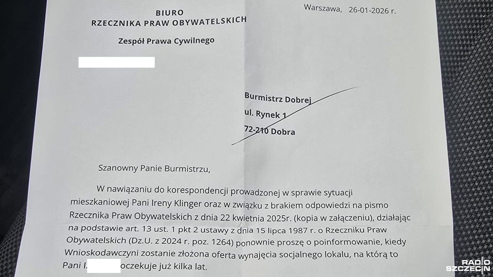 Kobieta poprosiła też o pomoc Rzecznika Praw Obywatelskich. Ten wnioskował do gminy o zamianę obecnego mieszkania.