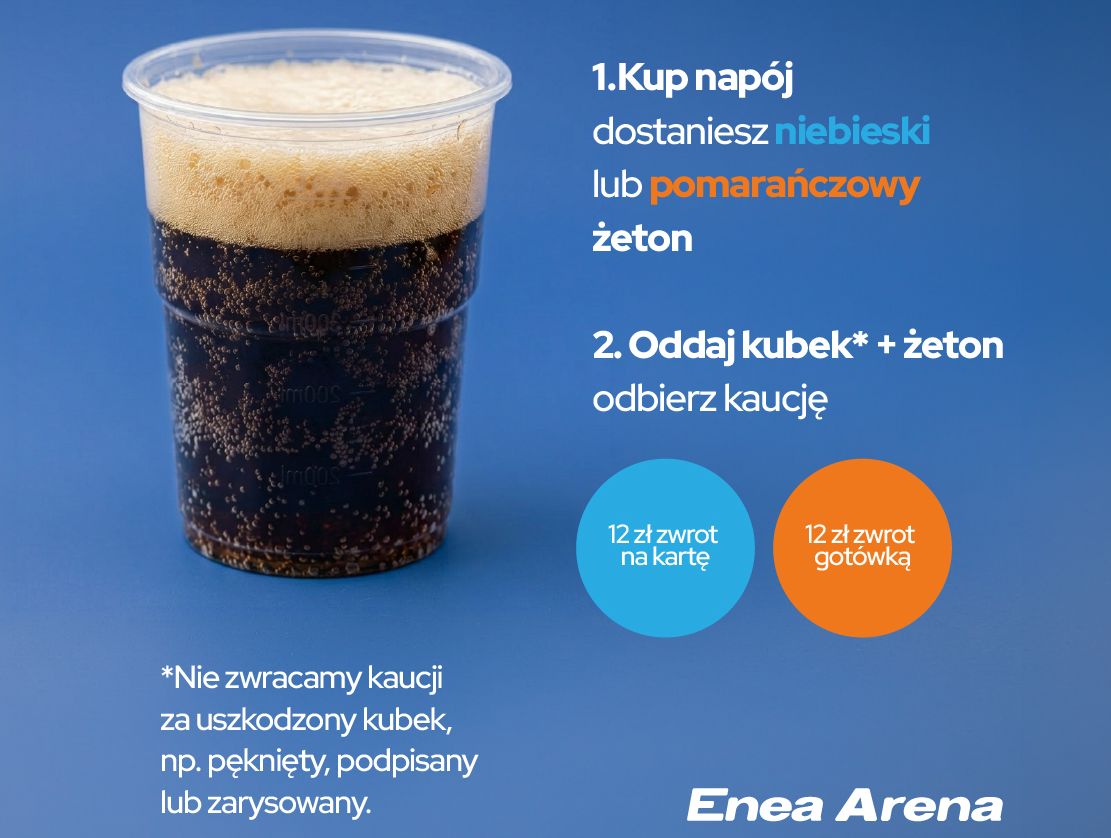 Szczecińska Enea Arena rezygnuje z plastiku i wprowadza kaucjowane kubki na napoje.