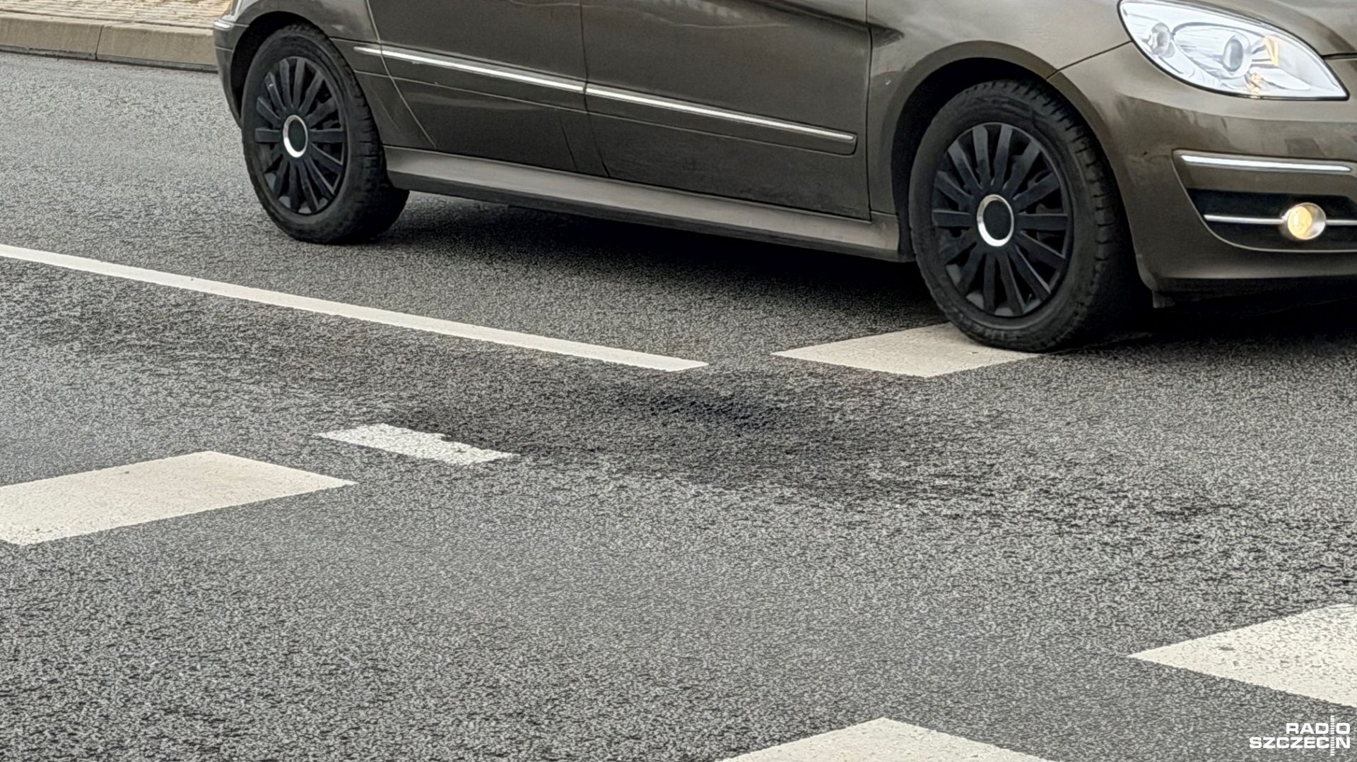 Asfalt porowaty - bo o ten materiał chodzi - został położony na dwupasmowej arterii przy ulicy Szafera pięć lat temu. Miał, między innymi, wygłuszać hałas i ułatwiać wsiąkanie wody. Jest jednak trudniejszy w utrzymaniu - zaznacza rzecznik spółki Tramwaje Szczecińskie Wojciech Jachim.