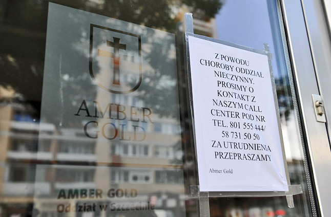 Pod drzwiami szczecińskiej siedziby Amber Gold pustki. Jest tylko przyklejona na szybie kartka z informacją, że z powodu choroby pracowników oddział został zamknięty i w razie pytań należy dzwonić na infolinię, ale i tu nie udało się połączyć z konsultantem.