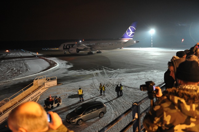 Pierwotnie na płycie lotniska miał być o 17.30, jednak ze względu na mróz, start z Warszawy i lądowanie w Goleniowie opóźniło się. Chętni mogli zobaczyć samolot, ponieważ dyrekcja portu otworzyła taras widokowy. Widokiem Dreamlinera cieszyli się tylko przez niespełna 15 minut, bo potem samolot odleciał.