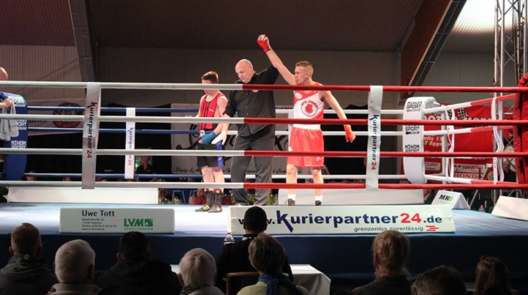 Tomasz Król, pięściarz klubu Olimp Szczecin skrzyżuje rękawice z Marcinem Ficnerem podczas sobotniej gali Seaside Boxing Show w Międzyzdrojach.
