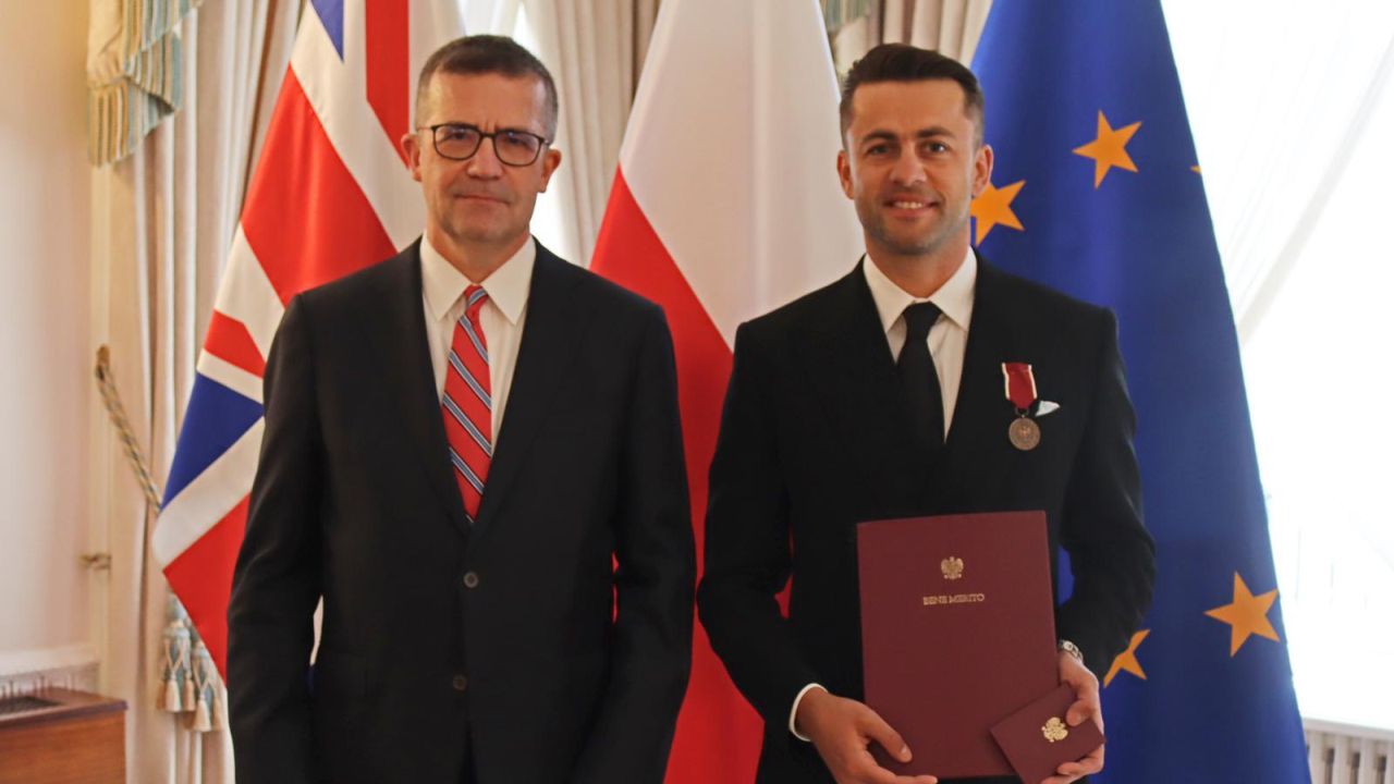 Bramkarz londyńskiego klubu piłkarskiego West Ham United - Łukasz Fabiański otrzymał odznakę Bene Merito w dowód uznania za skuteczną promocję Polski na arenie międzynarodowej - poinformował ambasador RP w Wielkiej Brytanii Piotr Wilczek.