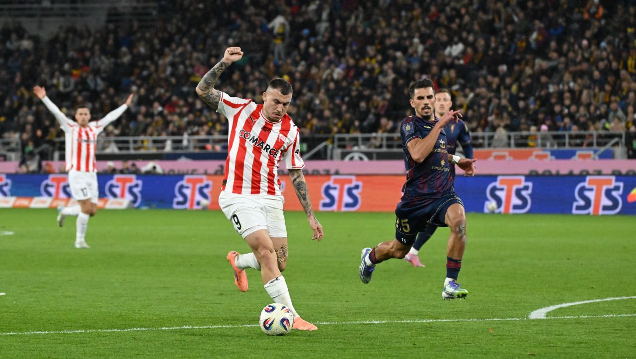 W 27. min. doskonałą sytuację miał Szwajcar Filip Stoijlkovic, ale Valentin Cojocaru, nie pierwszy raz w tym sezonie, zaprezentował się jak bramkarz szczypiorniaka, broniąc strzał nogami. Dwie minuty później rumuński bramkarz Pogoni odbił piłkę po strzale głową i Stoijlkovic dobił z bliska do siatki. Jeszcze tuż przed przerwą Szwajcar miał szansę podwyższyć prowadzenie Cracovii, ale jego strzał ponownie wybronił Cojocaru. Rumuński bramkarz w pierwszej połowie był zdecydowanie najlepszym graczem w Pogoni i sprawił, że na przerwę gospodarze schodzili z tylko jednobramkową stratą.