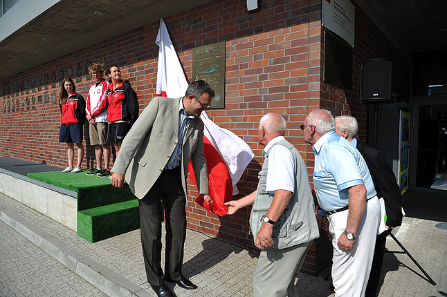 Przed wejściem na olimpijski basen Floating Arena odsłonięto pamiątkową tablicę upamiętniającą Mistrzostwa Europy w pływaniu w Szczecinie oraz sukcesy naszych reprezentantów.