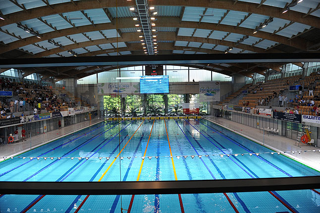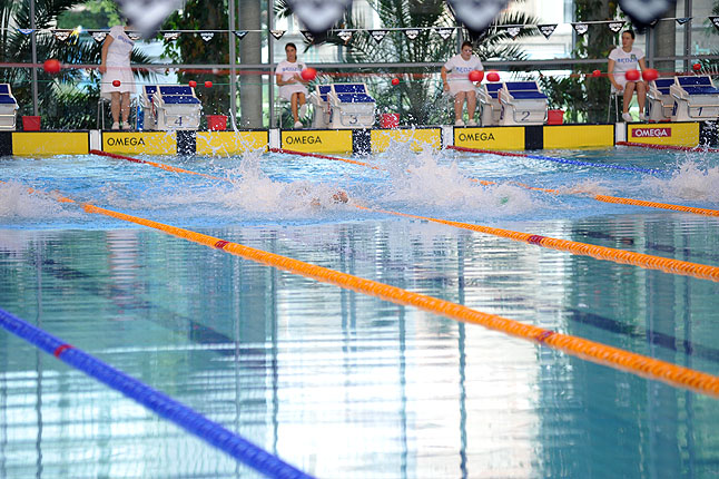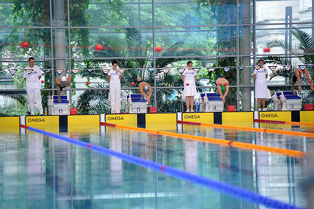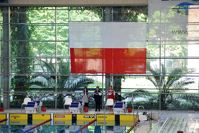 Pamiątkowa tablica odsłonięta, mistrzostwa Polski w pływaniu juniorów rozpoczęte.