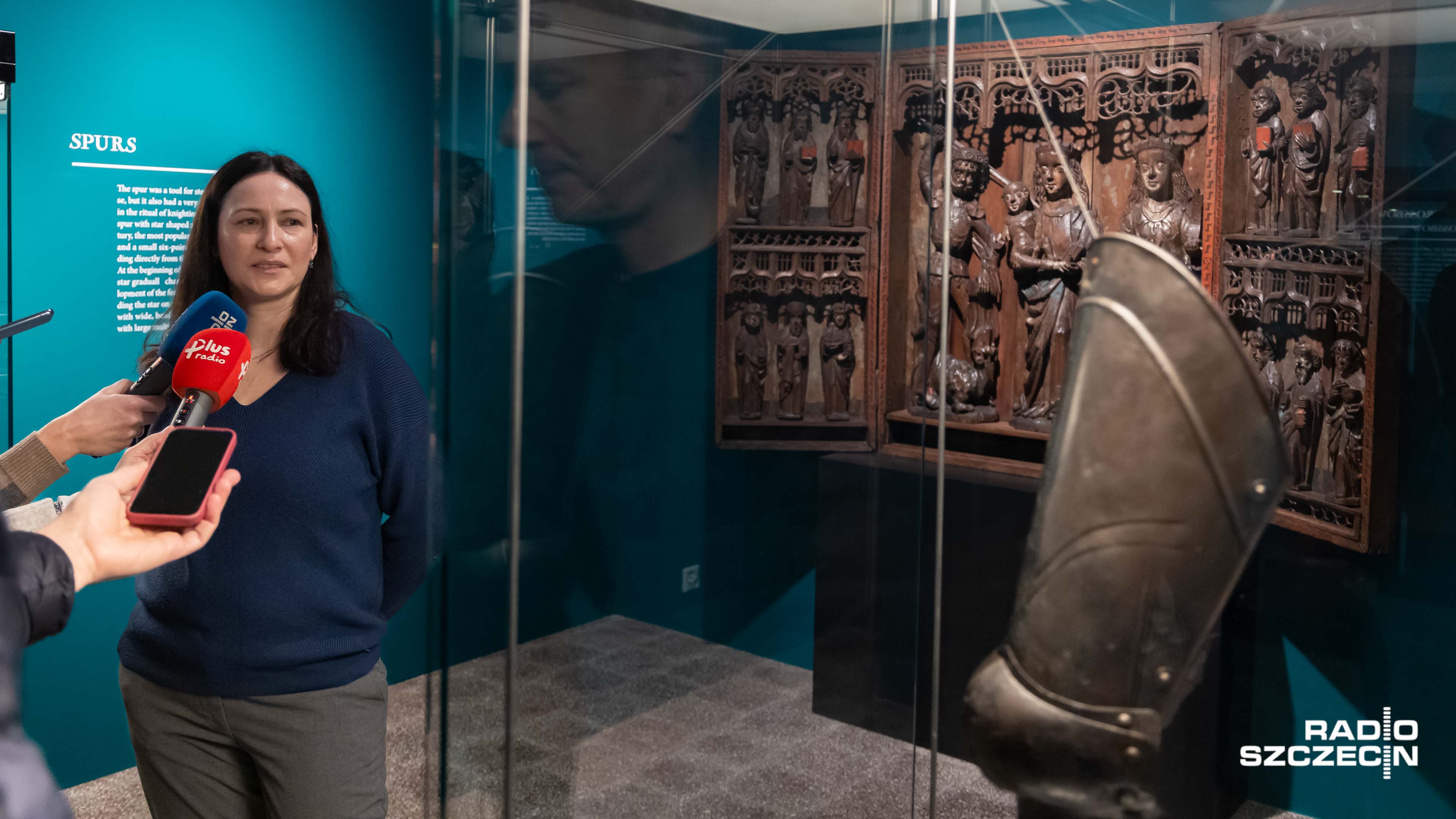 - Element zbroi ochronnej, tak zwanej zbroi płytowej, ochrona nogi, ma ona formę późnośredniowiecznej zbroi. Możemy to poznać po zaostrzonym szpicu, ponieważ zbroje odzwierciedlały modę ówczesnego okresu - mówi kuratorka wystawy.