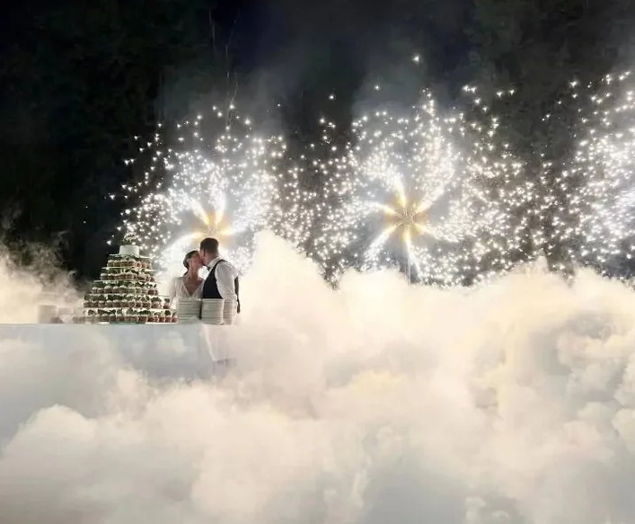 Efekt wizualny robi ogromne wrażenie – tysiące lśniących drobinek w kulminacyjnym momencie tańca wywołują zachwyt i nadają chwili wyjątkowy charakter. To również rozwiązanie bezpieczne i ekologiczne, które nie zagraża otoczeniu, ponieważ działa bez użycia otwartego ognia. Fontanna iskier tworzy także niesamowite tło dla zdjęć i nagrań – dzięki niej każda fotografia nabiera bajkowego, filmowego klimatu. W połączeniu z ciężkim dymem lub oświetleniem scenicznym daje spektakularny efekt, który na długo zapada w pamięć gości.