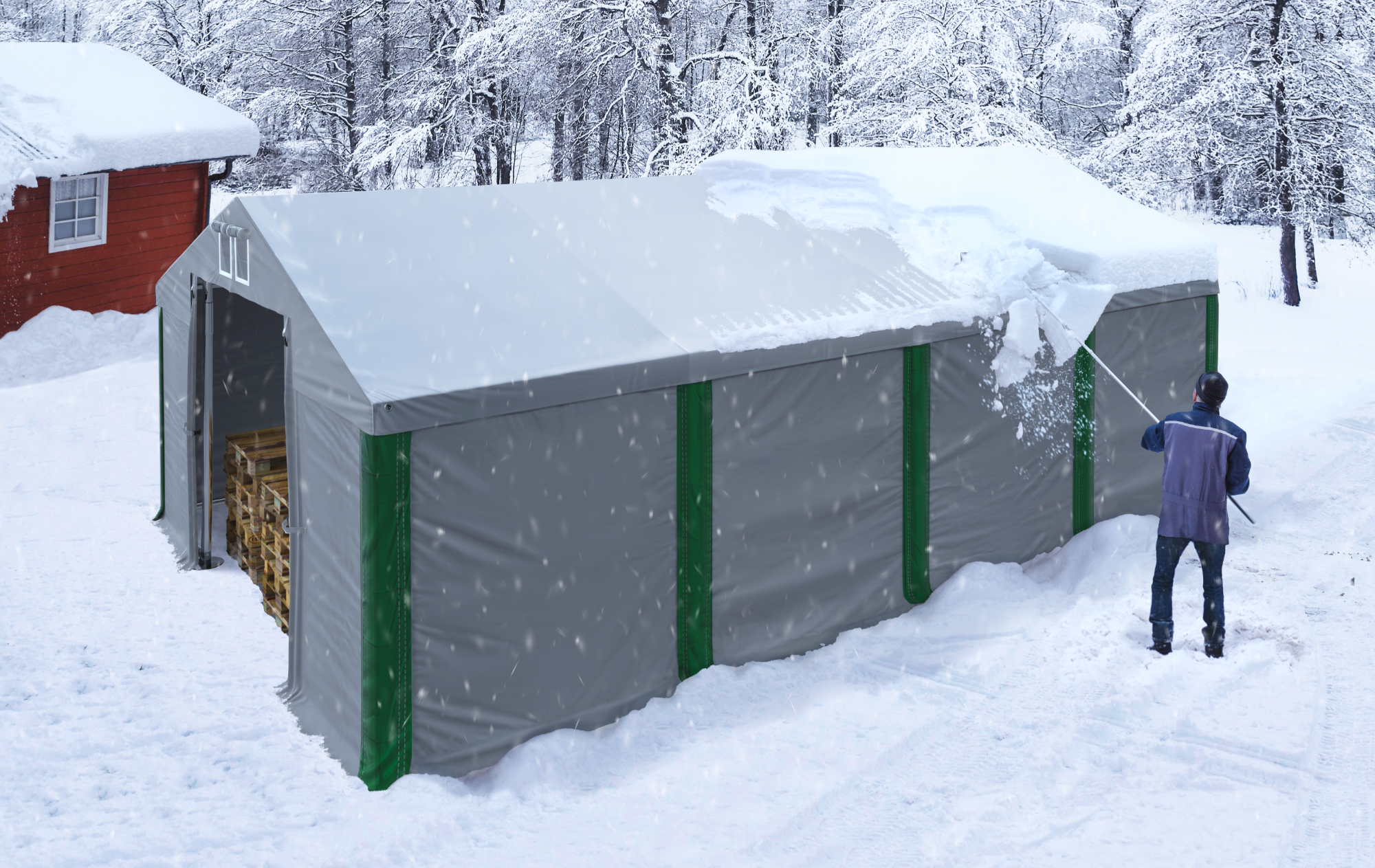 Zasady bezpiecznego usuwania śniegu z dachu hali namiotowej