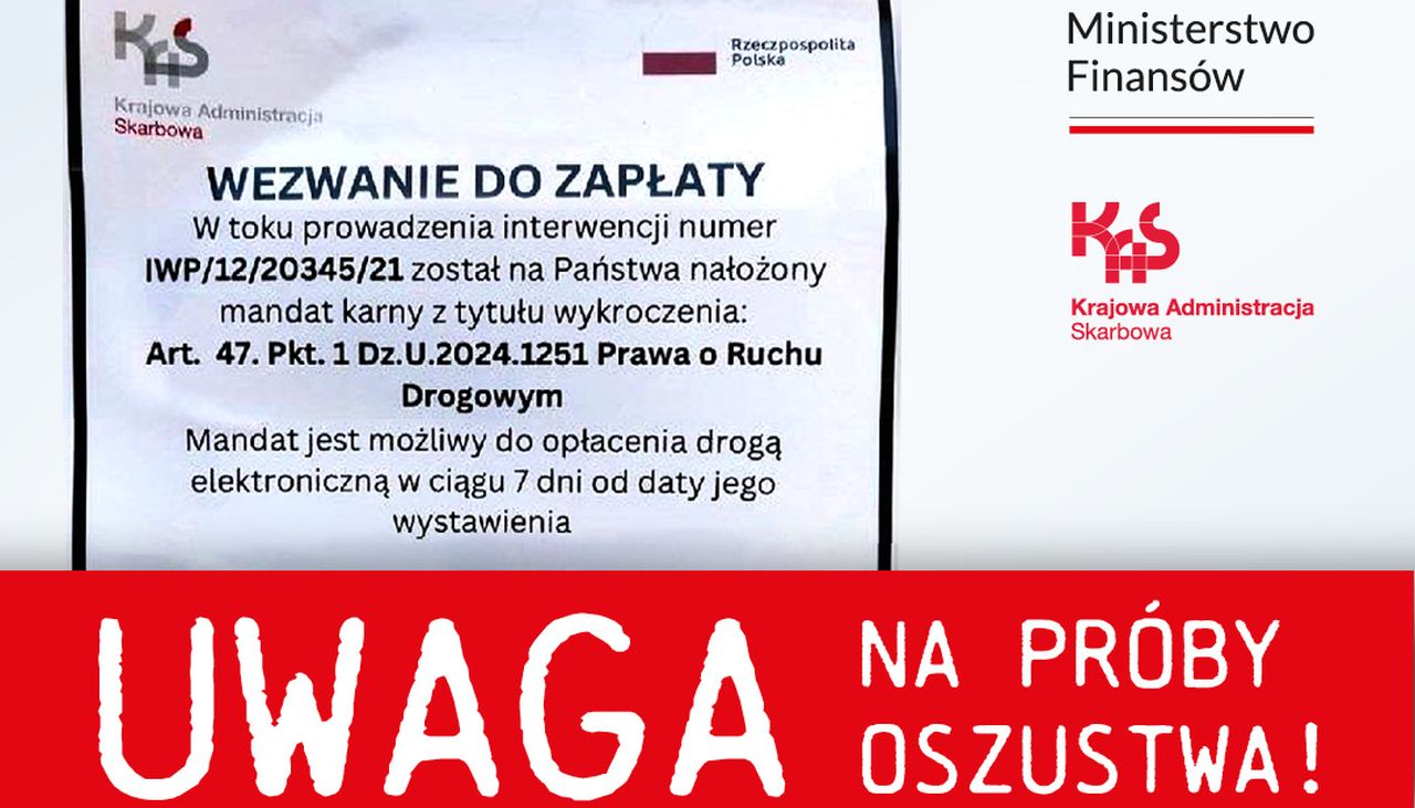 - Informujemy, że KAS nie przekazuje wezwań do zapłaty mandatów karnych za wykroczenia drogowe w postaci ulotek informacyjnych. Takie wydruki z bezprawnie użytym logiem KAS i kodem QR - pochodzą od oszustów. Znajdujący się w treści ulotki kod QR może zawierać szkodliwy adres URL i nakierować osobę skanującą na pobranie złośliwego lub niechcianego oprogramowania. Jego użycie może spowodować utratę danych albo zawirusowanie telefonu - przestrzegał.