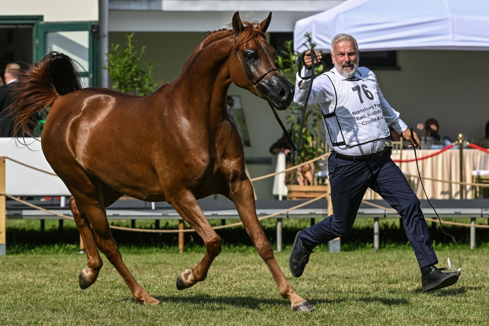 - Jako klaczka roczna wygrała czempionat Europy w Weronie. Natomiast w zeszłym roku prezentowaliśmy ją na pokazach w Tarnowie, w Janowie Podlaskim, w Pradze i w Lier. Na wszystkich tych pokazach zdobyła miejsca medalowe i najwyższą notę pokazu, więc jest bardzo dobrze zapamiętana przez wszystkich miłośników koni arabskich. Klacz ta jest generalnie kwintesencją polskiej myśli hodowlanej, bo jest nie tylko piękna, ale też dzielna. Jako trzylatka biegała na torze, startowała cztery razy, z czego trzy razy finiszowała jako pierwsza, w tym w Nagrodzie Sasanki - wyliczała pełniąca obowiązki prezesa stadniny w Janowie Podlaskim Weronika Sosnowska.