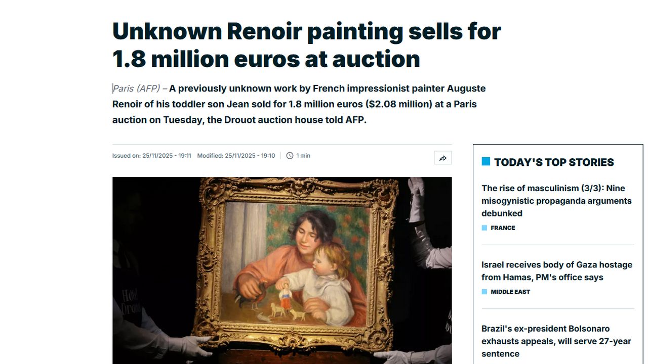 Obraz mistrza francuskiego impresjonizmu Auguste’a Renoira sprzedany na aukcji w Paryżu. Zapomniane od ponad 100 lat płótno zostało wylicytowane za niemal półtora miliona euro.