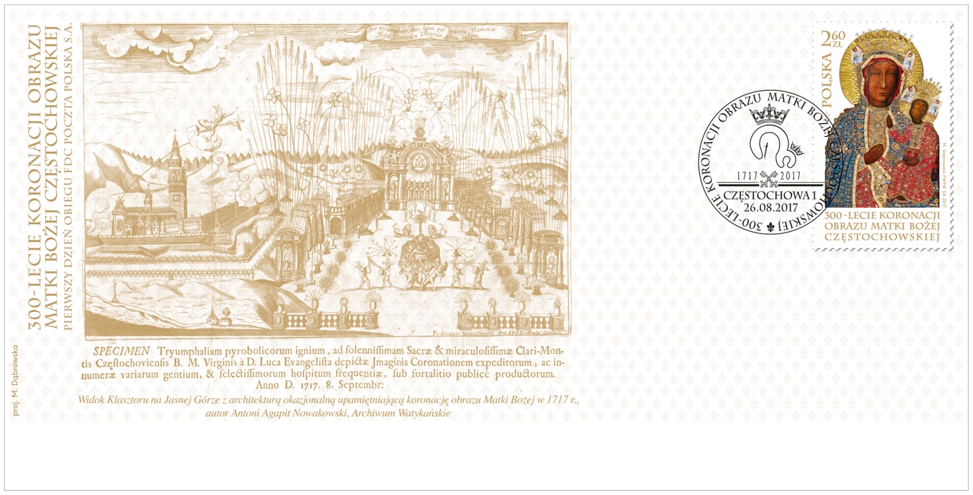 To znaczek kolekcjonerski. Do obiegu wejdzie 26 sierpnia. Towarzyszyć mu będzie tzw. koperta pierwszego dnia obiegu z reprodukcją ryciny z 1717 roku przedstawiająca koronację obrazu.